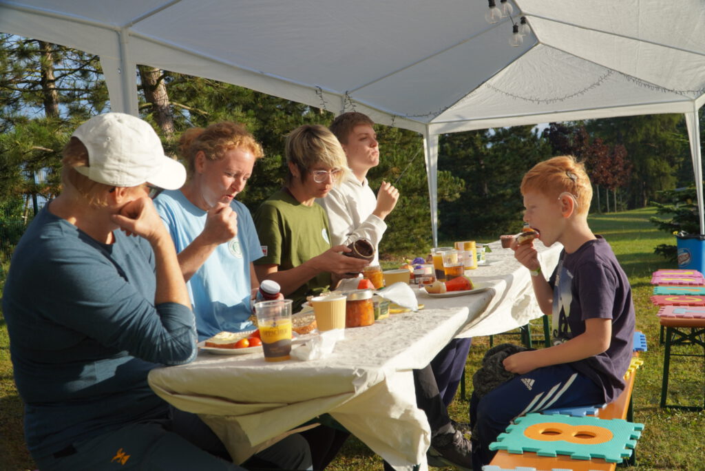 Ein kurzer Regenschauer am Nachmittag brachte alle in den Schuppen zur Kaffeepause, doch später zeigte sich die Sonne wieder und die Wettkämpfe konnten erfolgreich beendet werden. Am Abend folgte die Siegerehrung: Selbstgebastelte Pokale und Erinnerungs-T-Shirts sorgten für strahlende Gesichter – bei den Kindern genauso wie bei den Erwachsenen.
