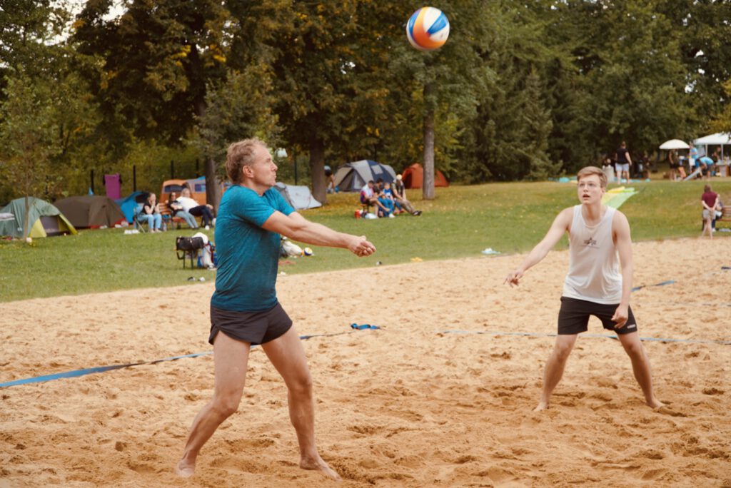 Nach dem Aufbau der Zelte begann das Camp mit einem gemeinsamen Grillabend und Lagerfeuer. Dabei kamen sich die Teilnehmenden schnell näher, erste Gruppen fanden zusammen und es entstand ein reger Austausch. Am selben Abend wurden die Teams für die Beachvolleyball-Matches ausgelost.